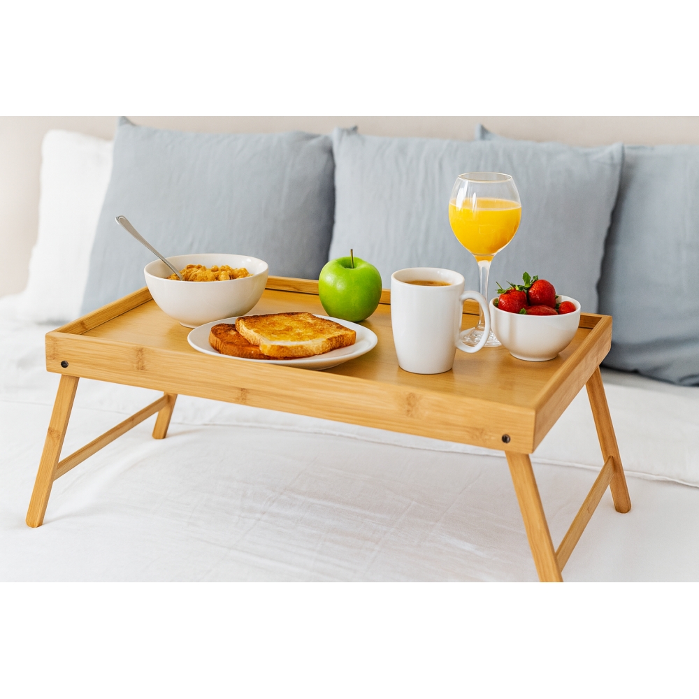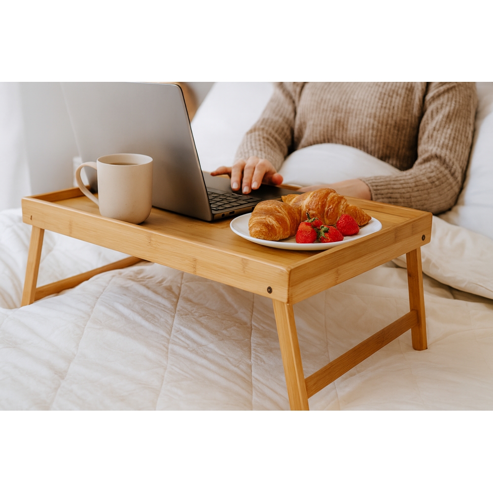 Mėgaukis ramiu rytmečiu su pusryčiais lovoje arba patogia darbo vieta su nešiojamu kompiuteriu neišlipant iš lovos! Šis bambukinis pusryčių staliukas su sulankstomomis kojelėmis – praktiškas, stilingas ir universalus sprendimas namams.