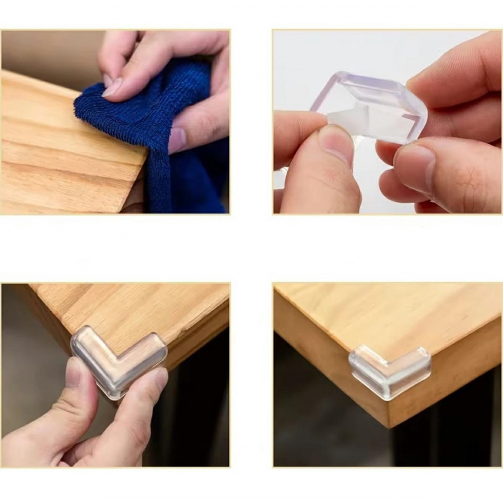 Silikoninių kampų ir kraštų apsaugų rinkinys. Efektyviai apsaugo aštrius kraštus nuo vaikų smalsumo. Minkštas silikonas apsaugo vaikus nuo smūgių į kraštus ir baldų kampus nuo subraižymų judant ir transportuojant. Tiesiog pritvirtinkite apsaugas prie baldų kampų, kad apsaugotumėte jas ilgai.