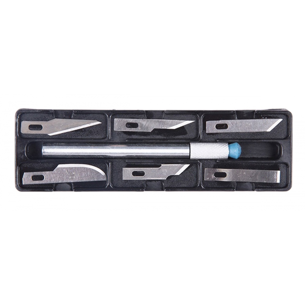 - Rinkinys supakuotas į plastikinę dėžutę su magnetine juostele, apsaugančia ašmenis nuo judėjimo.