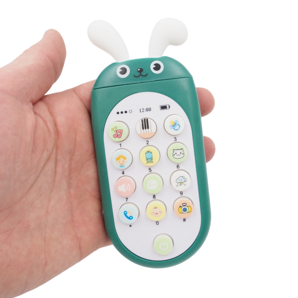Telefonas pagamintas zuikučio formos – su mielomis ausytėmis, ryškiomis spalvomis ir švelniu dizainu, todėl mažyliui jis iškart tampa patrauklus ir jaukus laikyti rankose. Mygtukai dideli, lengvai spaudžiami, su aiškiais simboliais ir spalvomis, o garsai – malonūs ir pritaikyti mažoms ausytėms.