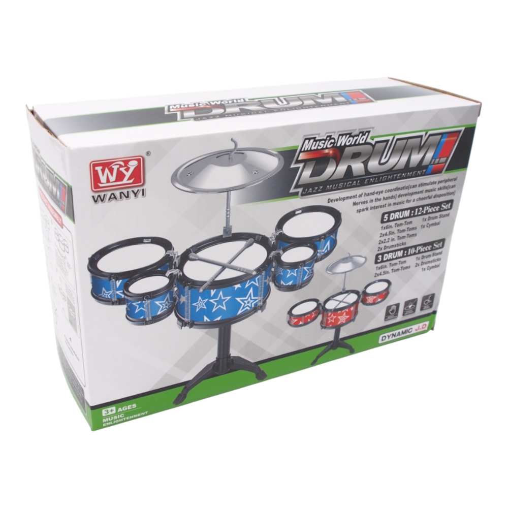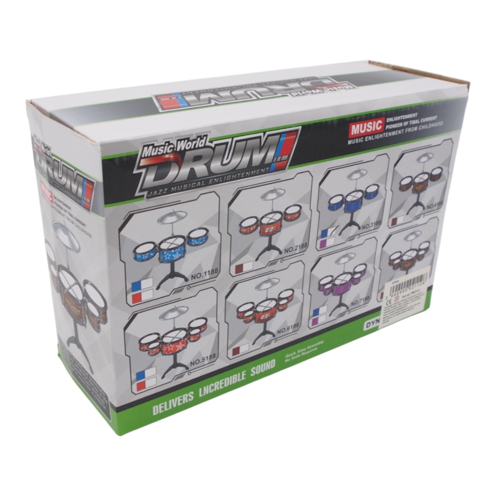 Šis rinkinys atkartoja tikro būgnų komplekto formą – yra keli skirtingų dydžių būgnai, stovas ir lėkštė. Vaikas jausis tarsi tikras būgnininkas!